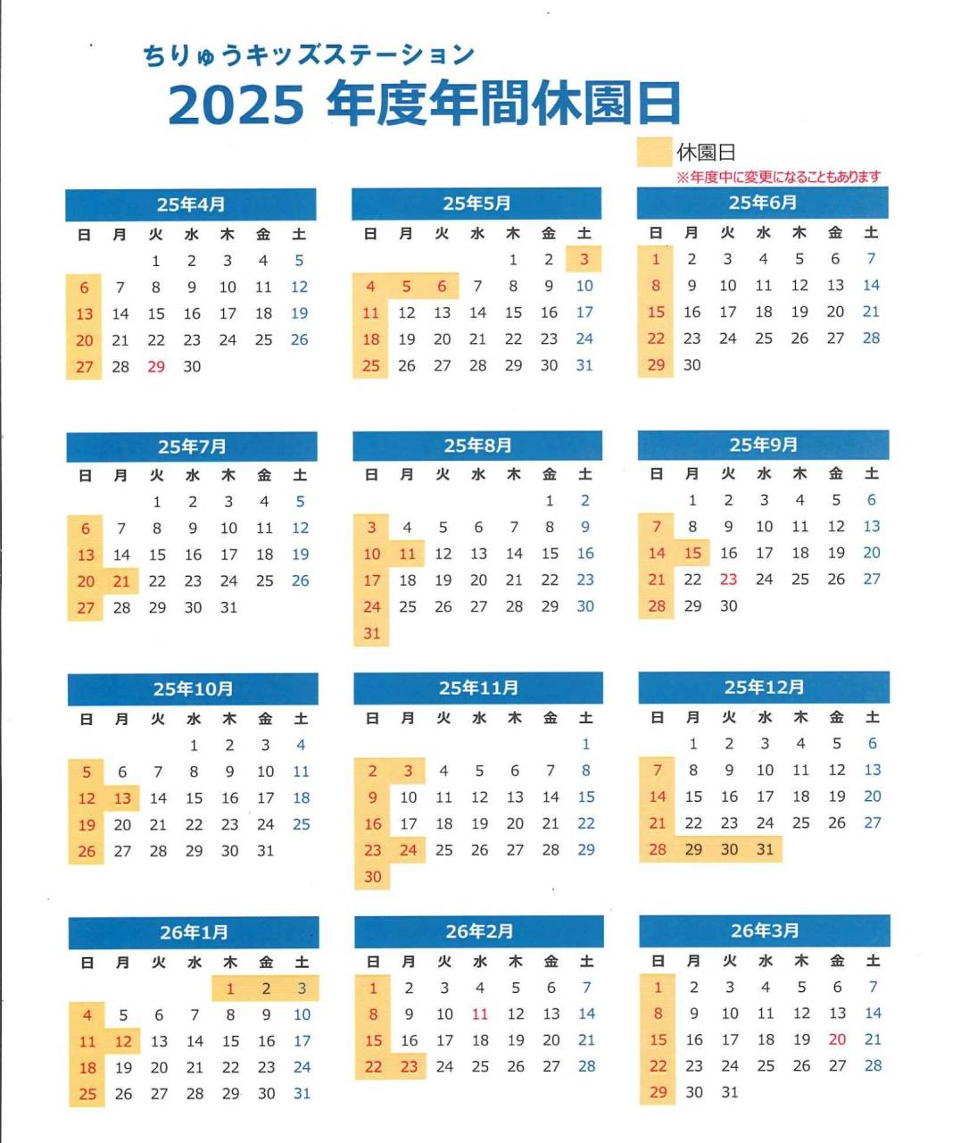 年間休園日